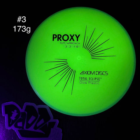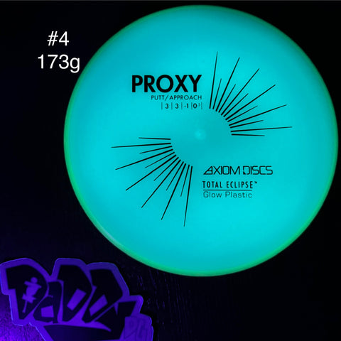 Sharing a core with the Axiom Envy, the Proxy maintains the low-profile feel and solid grip of the Envy, but with a more neutral flight path out of the box. High-speed turn and a forward fading finish set the Proxy up to be an incredibly versatile disc for shot shaping through wooded holes, around corners, or just laser straight shots. Now available any time of the year in the color glow cores and rims of Total Eclipse plastic - Green, Blue, Purple, Teal, and White - you can reliably add the Proxy to your bag for day or night. Experience one of the most versatile putters in the MVP family by grabbing your own Total Eclipse Proxy!