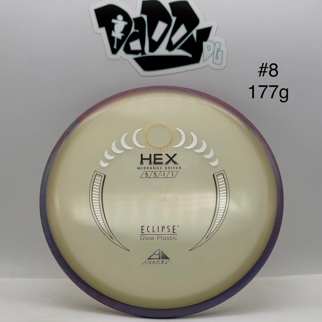 The most popular Axiom midrange disc is receiving its stock release in Eclipse plastic, the best glow plastic on the market! A laser straight flier able to handle power and torque without turning over, consistency is the name of the game here. Plus, with the slightly gummy Eclipse plastic, you’ll have a confident grip day or night! Give your game a glow up with the Axiom Eclipse Hex! Speed 5 | Glide 5 | Turn -1 | Fade |