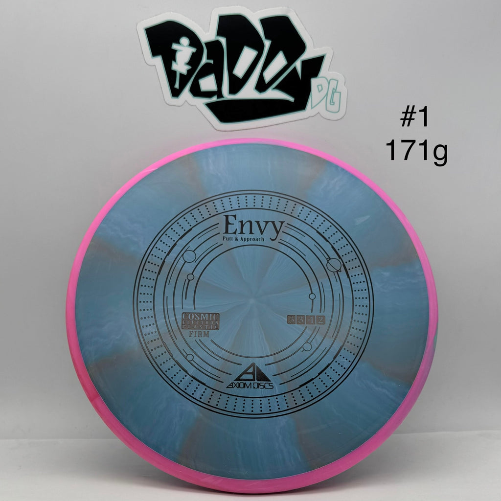 Delve into the subatomic realm with the new Comic Electron Envy! Axiom’s beloved go-to putter is getting a Cosmic Electron run in Cosmic Electron Firm, Medium, and Soft blends. The Cosmic Electron Envy has the smooth matte feel Electron is known for and now with eye-popping multi-color core and rims. The Cosmic Electron Envy has a straighter flight profile over the premium plastic blends, along with the best grip in any weather conditions. Turn some heads on the course with the gorgeous new Cosmic Electron Envy.
