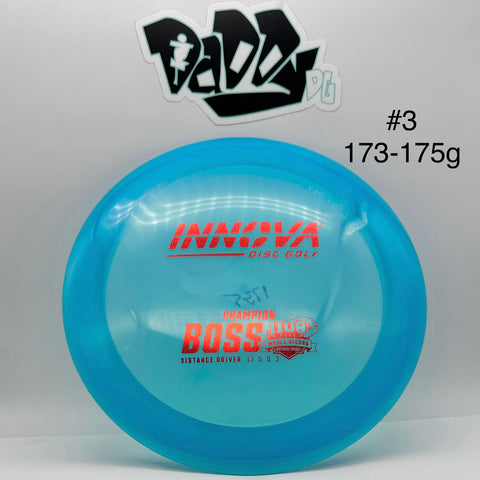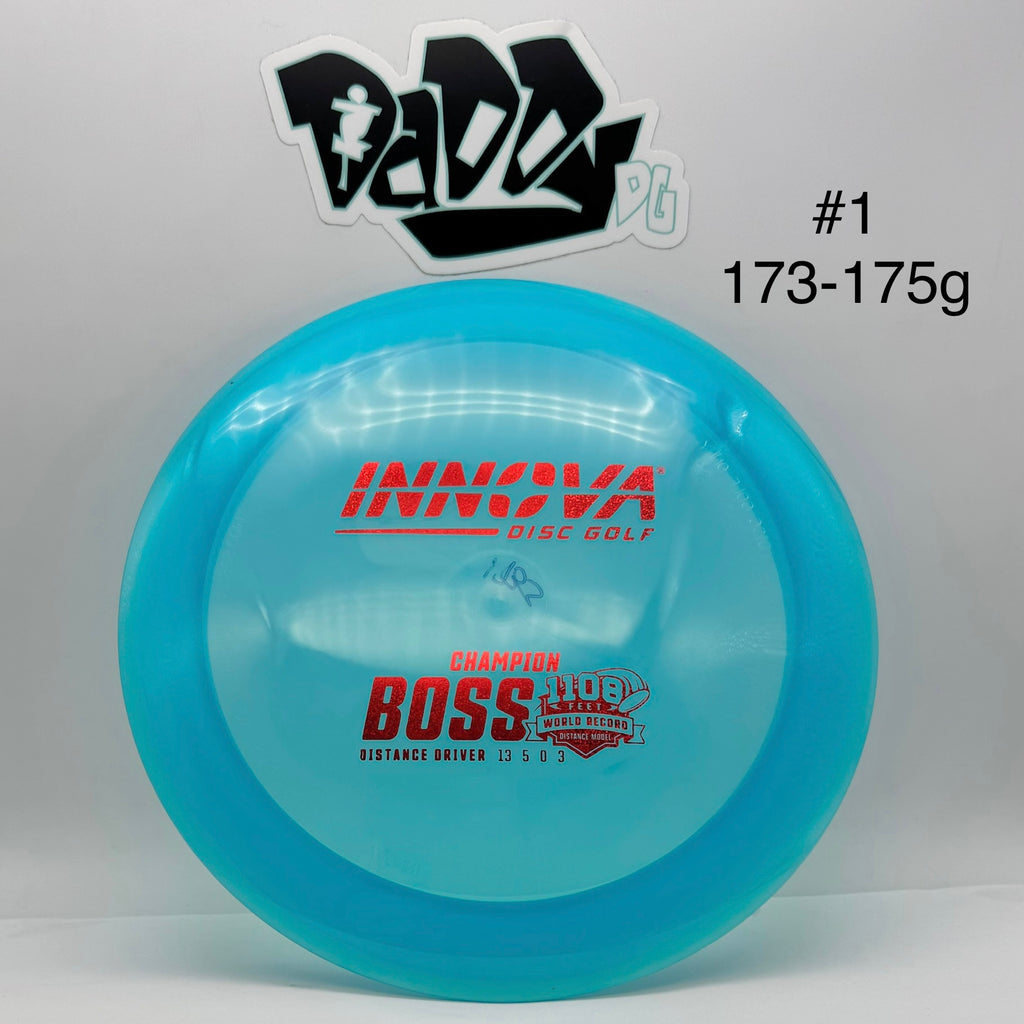 This is a fast stable driver that can handle full power throws and moderate headwinds. Advanced players and sidearm throwers will appreciate the dependable stability. The Boss has a slight high speed turn to help maximize distance with a predictable fade. David Wiggins Jr used a 154 gram R-Pro Boss to set the World Record 338 M (1108.92 feet) for the longest throw in March 2016.