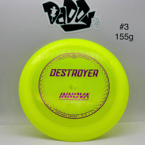 The Destroyer is a very fast stable long distance driver. This disc is much like a faster Wraith, but with a little more high and low speed stability. Great disc for sidearm throwers and those with lots of power. Can handle headwinds and throws with off axis torque. Not suggested for beginning players.