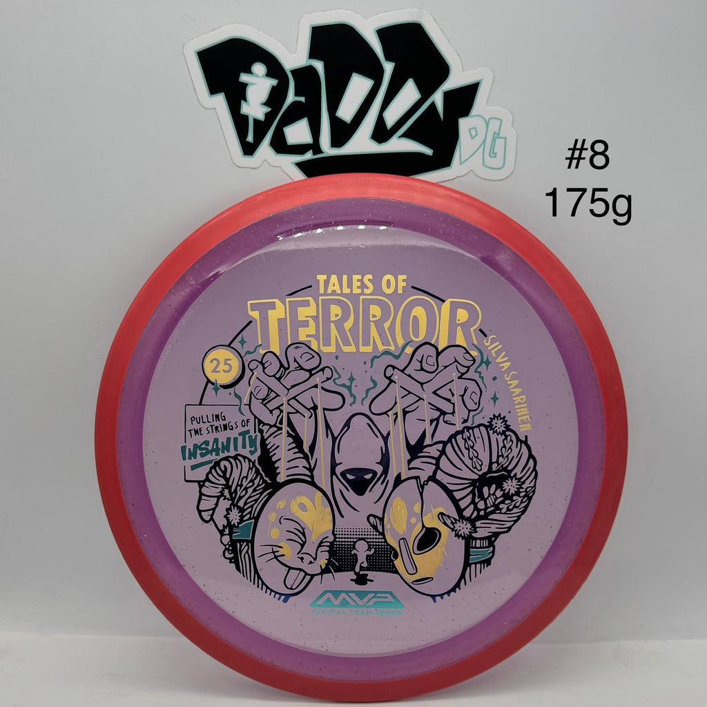 Beware the one pulling the strings during the Finnish Harvest Festival! Stamp newcomer Damian White unveils his first MVP stamp for this Halloween comic inspired design on the Particle Proton Insanity, a warning that some ornaments created for this event are a bit more ghoulish than they appear. The Insanity is a stable-understable driver that players will find easy to manipulate, with average power throws being remarkably straight with forward pushing fade, and higher power throws resulting in precise hyzer-flips, turnovers, and beautiful s-lines. Don’t let the course pull your strings - grab a Particle Proton Insanity today and prove who the true master is.