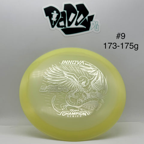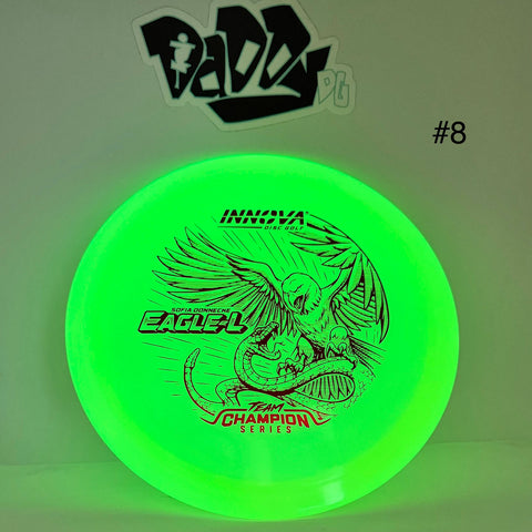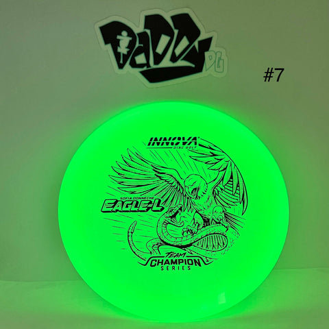 This disc comes in Innova's Champion Proto Glow plastic, which provides a durable alternative for glow in the dark golf discs. The Proto Glow plastic debuted in 2024, featuring brighter glow material making these discs glow noticeably brighter and for longer. Proto Glow Champion plastic is similar to Champion plastic in that it has smooth grip sufficient for mild, dry conditions. *Glow Champion plastic tends to be a tad softer than regular Champion discs. Champion plastic offers the least grip of Innova plastics. However, it rules the day (or night) in terms of durability.