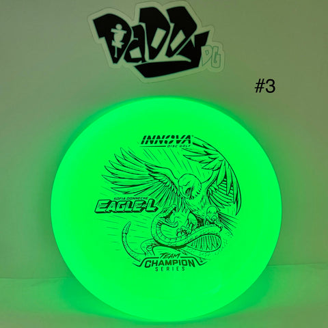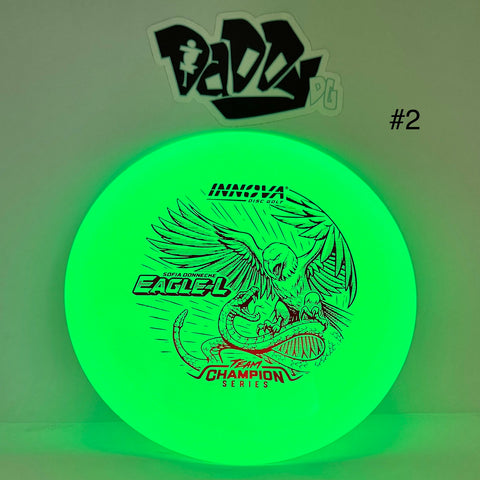 Team Champion's Sofia Donnecke brings back one of the most popular discs from last season, the Proto Glow Champion Eagle-L. This mellowed-out version of the popular Fairway Driver has a smooth, balanced wing; making those long, gliding, gentle-finishing flights easier to keep in the middle.