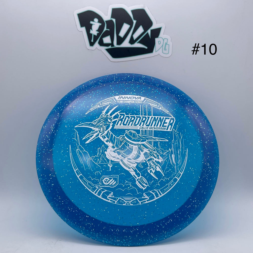 The Roadrunner is a staple in many pros bags, including Callie McMorran from Innova's Team Champion. For her 2022 Tour Series disc, Callie wanted the long, straight, flight of the Road Runner, but with a little more stability to handle the wind. The Champion Metal Flake Roadrunner is the beefed-up version of the straight-flying disc that she loves, and we think you'll love it too!