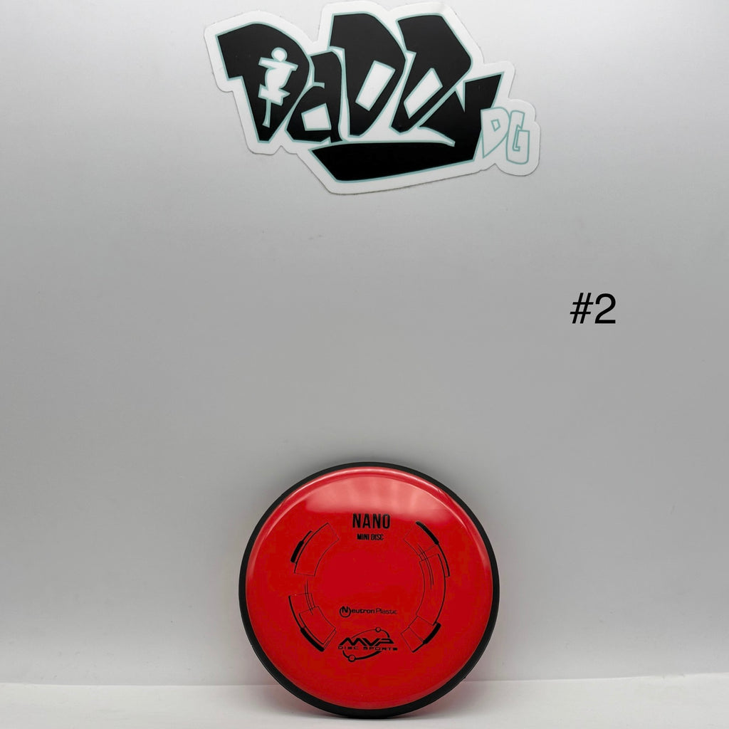 The Nano is a mini disc suitable for playing mini disc golf or as a marker in competitive disc golf. It bears the same premium quality, aesthetics, and high production standards as our golf discs in half the diameter. Mark your lie in style, and reinforce that all-important confidence in your plastic. For those who enjoy throwing mini discs, the Nano has a versatile straight-stable flight that can be used for low-power indoor throws as well as high-power outdoor throws. The Nano is a must-have for every MVP thrower.
