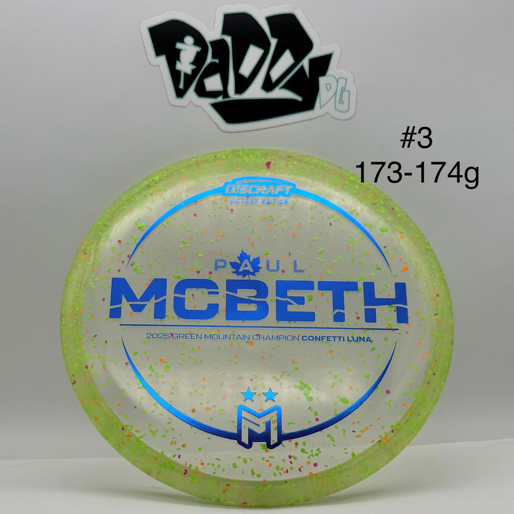 Celebrate greatness with the Paul McBeth Victory Edition Luna. Released in Z Confetti, this special edition honors Paul’s impressive win at the Green Mountain Championship—his second DGPT victory of the season. The Luna is already one of the most trusted putters in disc golf, and this limited Victory Edition offers retailers and players alike a collectible piece tied directly to a major achievement in Paul’s 2025 season.