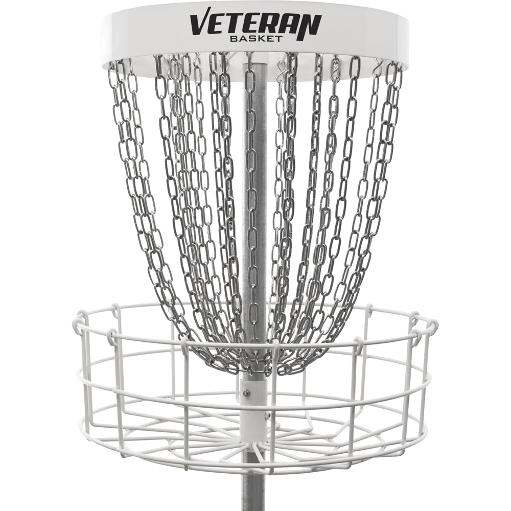 The Dynamic Discs Veteran is a great solution for your most durable basket demands. Starting with an upper assembly of hot dip galvanized metal components followed by a powder coating application ensures that the elements will not compromise the functionality or aesthetics of your new basket. Equipped with hot dip galvanized chains and an 18-8 stainless steel upper assembly, this basket will look and sound great for years to come. A proven name with a great product at a great price. Enlist the Veteran for your disc golf course today!
