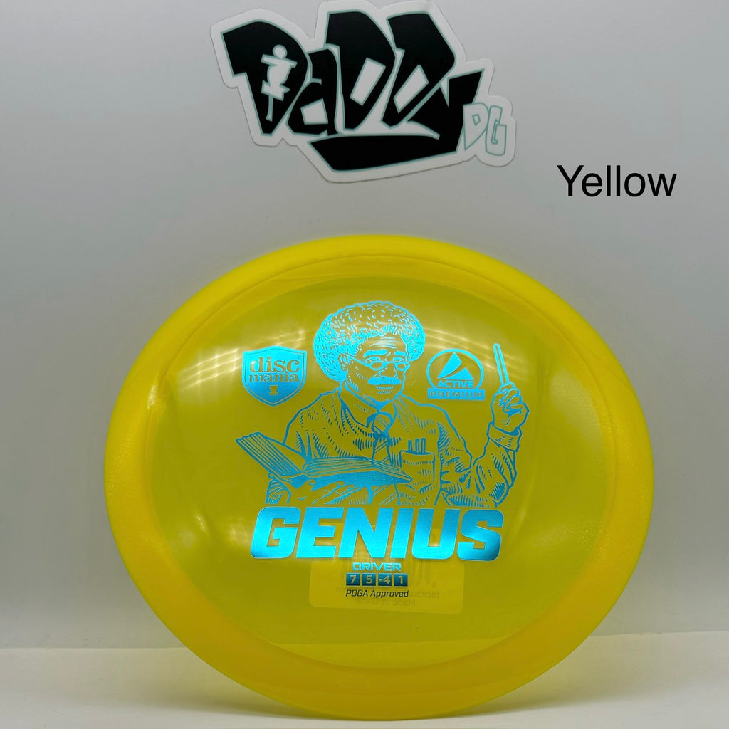 Designed to flip and fly, the Genius has massive amounts of turn making this the optimal disc for beginners as well as anyone looking for a disc that can do more. Due to its unique flight characteristics the Genius is able to fill a variety of shots in the bag making this an optimal driver for any player. The Genius uses its massive turn to carve shots in the air, navigate tight lines, and even turn into a roller that tears down the fairway. The Active plastic is a step above our traditional base-level plastic. You can expect it to be a bit more rigid to the touch and maintain a grippy, glossy appearance.
