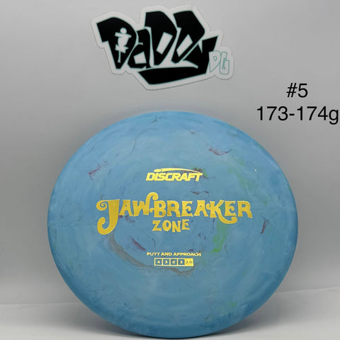 The Jawbreaker Zone offers exceptional control and stability for putt and approach shots, with a visually stunning plastic blend. This overstable disc is perfect for handling headwinds and executing precise shots with a reliable fade. The unique swirl patterns in this blend provides a one-of-a-kind appearance, while the tacky grip ensures consistent performance and control, making it a must-have for players seeking both style and functionality.