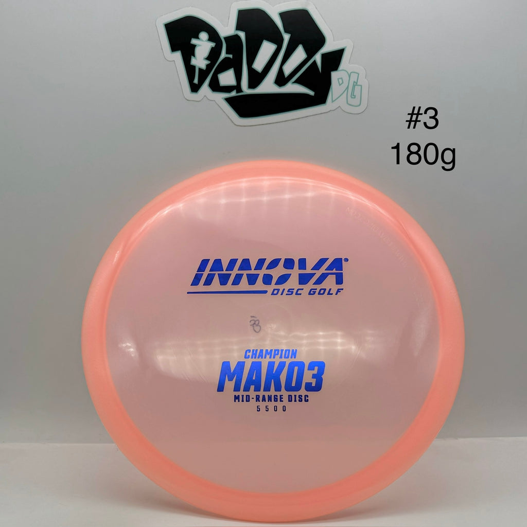 This Mid-Range disc is the perfect solution for anyone who wants a straight flyer with very limited fade. The Mako3 is available in Champion plastic, and it's faster than the original Mako. Players will like the Mako3's glide for added distance. The easy to grip and release rim offers clean consistent releases. The Mako3 is a great disc for one disc rounds.